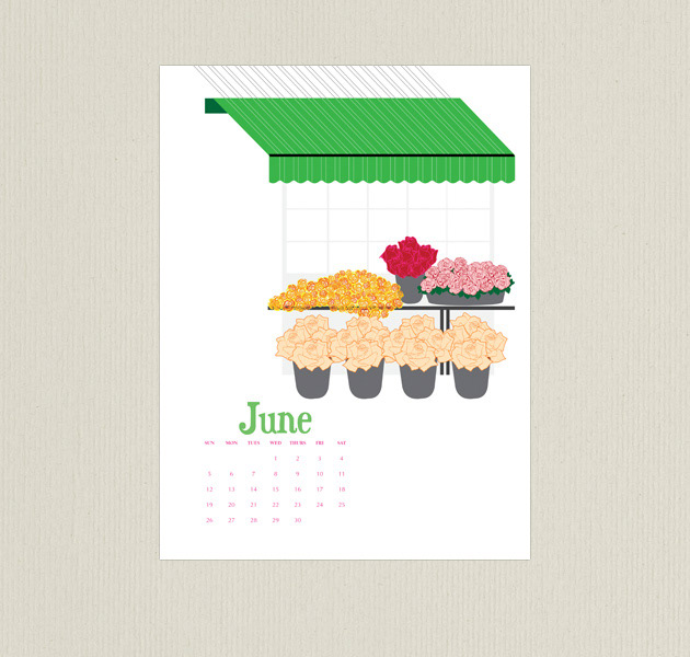Calendar featuring seasonal illustrations used for self promotion.