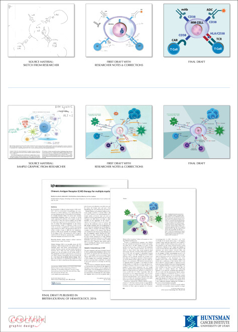 Alumni of the Visual Art & Design program at Salt Lake Community College have stayed in touch by connecting on social media groups and regularly volunteering our time in the classroom. Alumni return each semester to present professional work, help with student critiques, play the role of client, and offer industry insight and knowledge. For this annual show, alumni were asked to present a work from our professional lives illustrating the process we use to design. I chose to present two types of medical graphics I have created. My process starts when a client sends me a sketch or reference image and then explains to me what they are trying to communicate. My role is to then create original artwork we can claim the rights to use in publications and patient care materials.