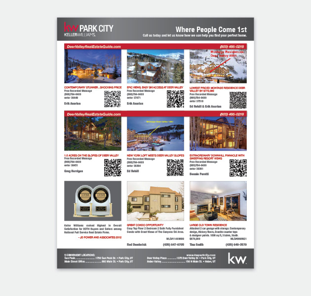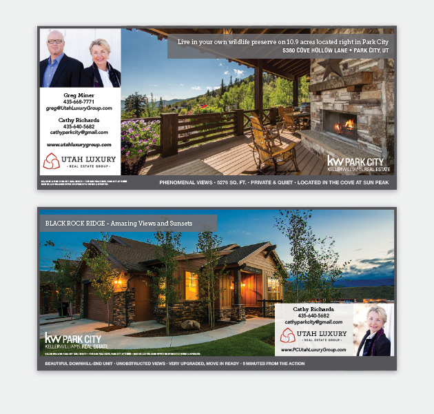 Print ads for a number of realtors based out of Keller Williams Park City Real Estate. Ads were placed in The Park Record, The Wasatch Wave (Heber, UT), and Homes & Land Magazine among other publications.