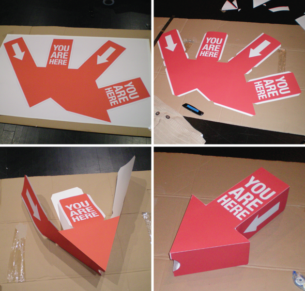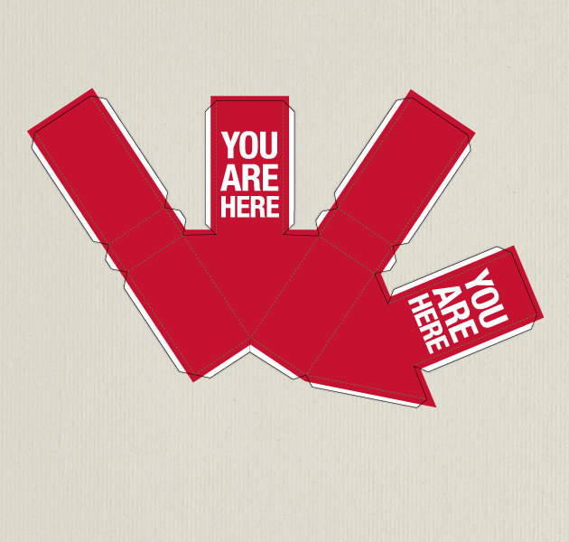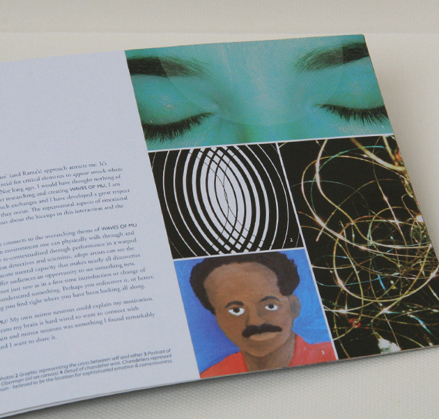Amy Caron's Waves of Mu is a multi-disciplinary installation and performance-art piece that centers around neuroscience and the functions of the brain. 3-D design pieces were used in the installation of a larger-than-life human brain that spectators were encouraged to explore before a theatrical performance. A brand was created for an exhibition catalog along with materials to promote the work to galleries, donors, and spectators. The 3-D arrow box marked YOU ARE HERE was designed using an original die and produced by hand for the cause. :)